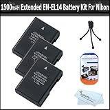 3 Pack Replacement Extended (1500 Mah) Battery Kit For Nikon EN-EL14 Rechargeable Li-Ion Battery for Nikon D3100 SLR and P7000 Digital Cameras Includes 3 Replacement EN-EL14 ENEL14 Battery + LCD Screen Protectors + Mini Tripod + MicroFiber Cloth