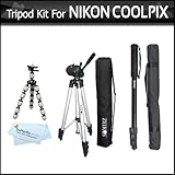 Tripod Kit For Nikon COOLPIX P100 P500 Digital Camera Includes 50" Full Tripod w/ Case + 67" Monopod + Gripster Flexible Tripod + MicroFiber Cleaning Cloth (Electronics)